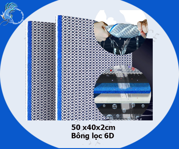 Bông lọc 6D được kết hợp 6 lớp lọc, đem lại hiệu quả vượt trội. (kích thước: 50 x40x2cm)